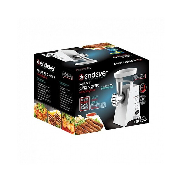 Мясорубка Endever Sigma 53 призвана максимально облегчить домашний труд и превратить процесс приготовления пищи в настоящее удовольствие. С помощью мясорубки Endever Вы сможете легко и быстро готовить вкусные и полезные домашние блюда: пасту, лазанью, голубцы, котлеты, домашние пельмени и многое другое. В комплект мясорубки включены три дисковые решетки с различным диаметром отверстий, 3 мм/5 мм/7 мм, насадка для колбас, кеббе. Мясорубки оснащены технологией Multi Slices, которая обеспечивает 100% выход мяса, препятствует забиванию выводящего отверстия, облегчает мытье и уход. Удобная ручка позволит легко перенести изделие с места на место и удерживать его во время работы. Мясорубки выполнены в компактном корпусе, но оснащены мощным мотором с медной обмоткой, максимальная мощность при блокировке мотора 1900 Вт. Производительность мясорубок Endever Sigma-53/54 до 2,7 кг готового продукта в минуту!
