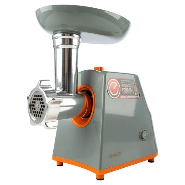 Мясорубка Energy EN-142 в симпатичном серо-оранжевом корпусе станет эффективным и неутомимым помощником для кухни. Комплектация модели предусматривает наличие 2 перфорированных дисков для мелкой и крупной нарубки фарша.