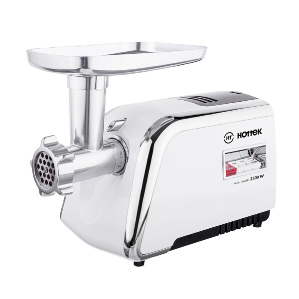 Мясорубка Hottek HT-976-005 предназначена для измельчения мяса, изготовления колбасок и кеббе. Модель имеет 2 скоростных режима и кнопку остановки. Функция реверс поможет очистить шнек от жил или случайно попавшей косточки. Внутренние детали – шнек, ножи, решетки – сделаны из металла, это плюс, поскольку на них ложится вся нагрузка при работе электрической мясорубки.