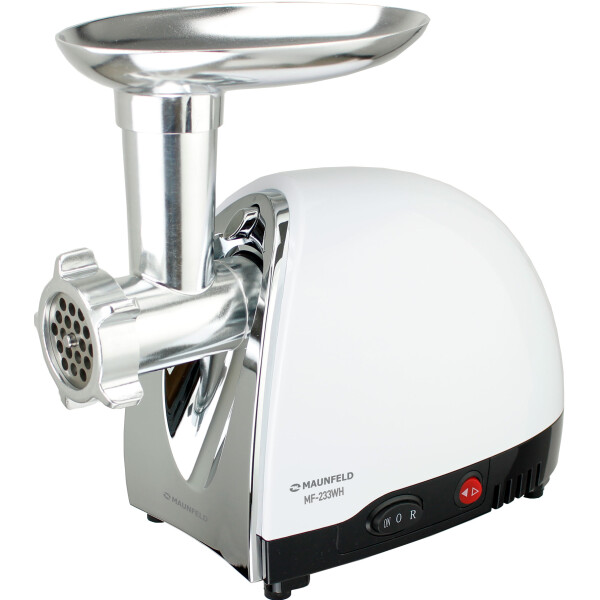 Электрическая мясорубка Maunfeld MF-233WH с реверсом компактна и удобна в использовании.