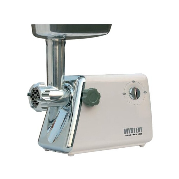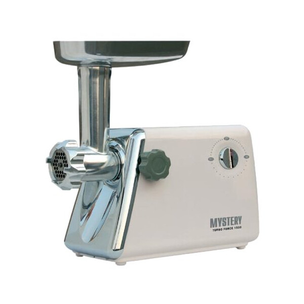 Мощность модели Mystery MGM-1550 составляет 1500 Вт, благодаря чему за одну минуту она может накрутить 1250 г фарша, что является показателем высокой продуктивности. Максимальное количество времени, которое аппарат способен работать без передышки, составляет 15 минут. В случае возникновения перегрузки двигателя автоматически сработает система безопасности, которая отключит прибор. Технология «Реверс», которой оснащена эта мясорубка, разрешает не разбирать механизм всякий раз, когда в спирали что-то застревает. Обратное движение лезвия при включении этой функции вытолкнет помеху в загрузочный лоток. Агрегат оборудован длинным сетевым шнуром, что позволяет установить мясорубку там, где вам больше нравится.
