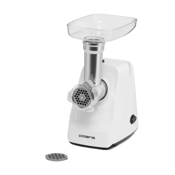 Мясорубка Polaris PMG 1852 RUS белый оснащена съемным ножом из нержавеющей стали. У нее две насадки для шинковки и натирания продуктов. Мощность составляет 1800 Вт. Скорость у нее одна, присутствует реверс. Модель перерабатывают 2 кг сырья в минуту. Корпус и лоток мясорубки пластиковые. Ножки прорезиненные.
