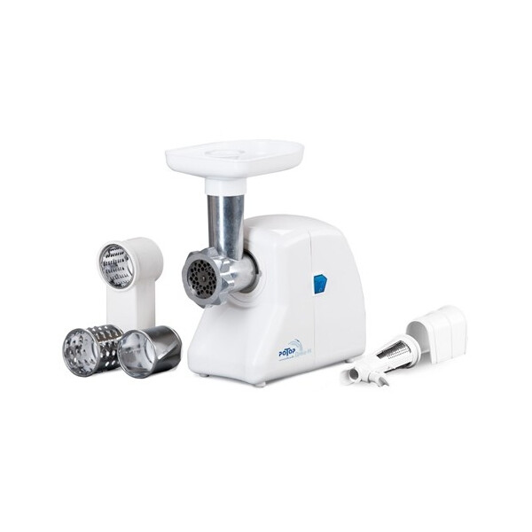 Мясорубка Ротор Дива-М ЭМШ 30/230-3 – это высококлассное бытовое устройство для накрутки фарша в домашних условиях. Аппарат белого цвета, корпус которого выполнен из сверхплотного ударостойкого пластика, отлично впишется в любую кухню. Прибор обладает не самой большой мощностью, однако за одну минуту способен перекрутить 580 г мяса.