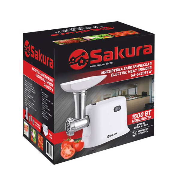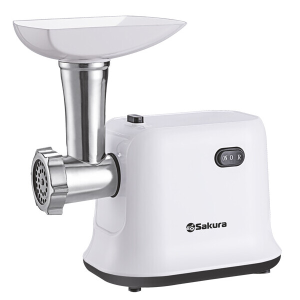 Мясорубка электрическая, 1500 Вт, функция реверс, корпус из эко-пластика, пластиковый лоток для продуктов и толкатель, металл. шнек, нож из нерж.стали, металл диск для измельчения (5 мм), отключение при перегреве.