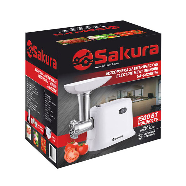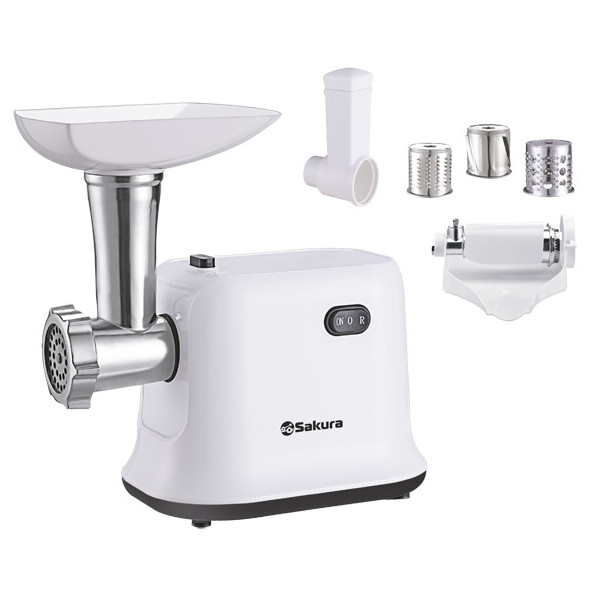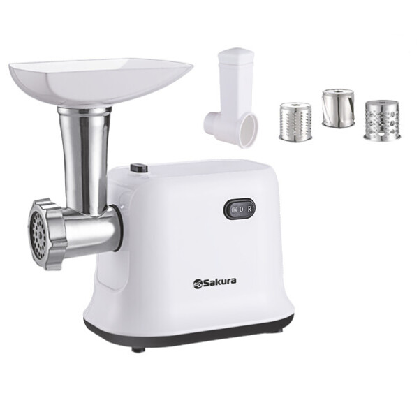 Мясорубка электрическая, 1500 Вт, функция реверс, корпус из эко-пластика, пластиковый лоток для продуктов и толкатель, металл. шнек, нож из нерж.стали, металл диск для измельчения (5 мм), отключение при перегреве.