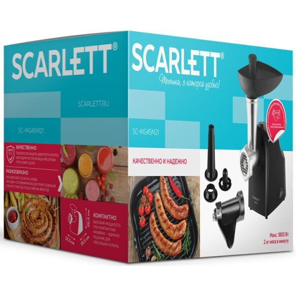 Мясорубка Scarlett SC-MG45M21 идеально подходит для приготовления привычных блюд и гастрономических изысков. Компактный прибор способен справиться с жёстким и даже жилистым мясом. Высокая мощность 1800 Вт позволяет за минуту произвести 2 кг фарша.