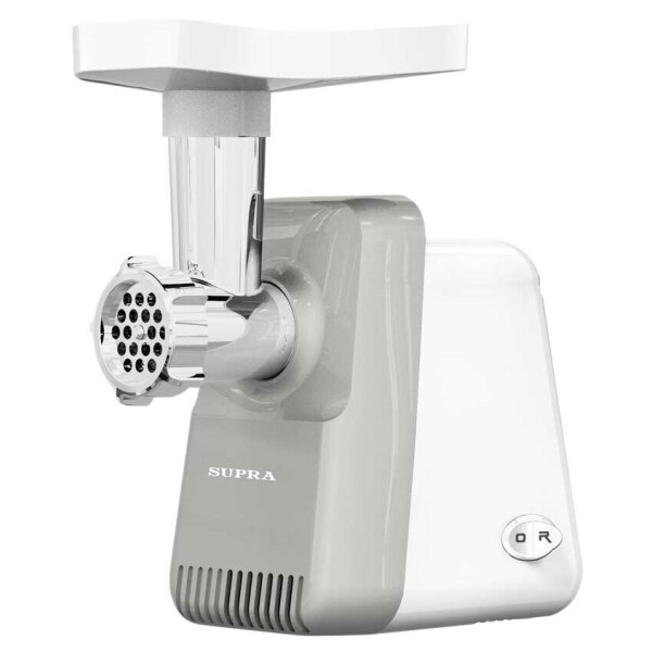 Мясорубка Supra MGS-2004 укомплектована двумя решетками, подходящими для приготовления разных видов фарша. Обе насадки можно хранить в специальном отсеке внутри корпуса. Функция реверса позволяет быстро очищать шнек от намотавшихся жил и крупных кусков мяса. Прорезиненные ножки помогают устройству оставаться устойчивым на любой поверхности.