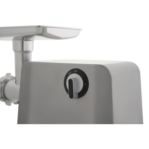 Больше не нужно разбирать мясорубку, чтобы провести очистку рабочего отсека от излишков мяса: функция реверса запустит обратный ход шнека. При этом масса продуктов перераспределится, и прибор будет готов к дальнейшему использованию.