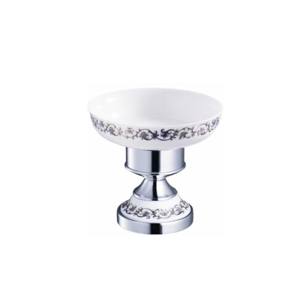 Керамическая настольная мыльница Schein Carving является отличный дополнительным аксессуаром для ванной, который используется для декорирования ванной комнаты. Изделие имеет настольный тип крепления. Его основа изготовлена из латуни, покрытой хромом. Чаша для мыла создана из белой керамики, и имеет характерную узорную роспись по контуру. Такого же типа рисунок, находится на самом держателе, что позволяет подчеркнуть изысканность помещения, и отлично сочетается с большим количеством существующих стилей.