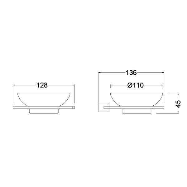 Керамическая мыльница с настенным креплением Schein Swing 322C состоит из латунного держателя с хромированной платформой, на которой размещается сама мыльница.
