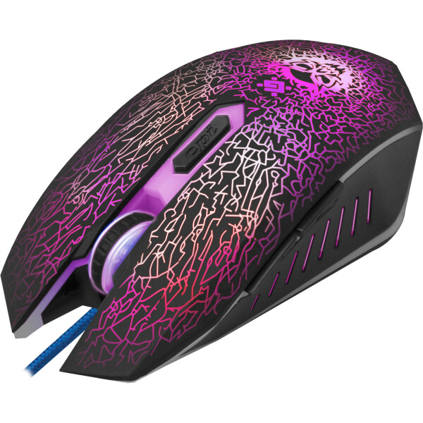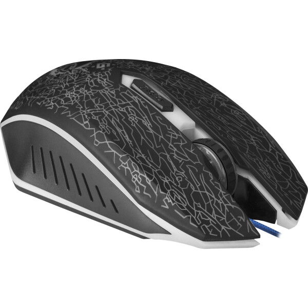 Мышь имеет широкое прорезиненное колесо прокрутки шириной 8 мм с подсветкой, высокопрочный долговечный кабель, позолоченный USB-коннектор, 2 дополнительные боковые кнопки. Девайс оснащен ферритовым фильтром помех, переливающейся подсветкой, имеет прочное, приятное на ощупь прорезиненное покрытие и 5 программируемых кнопок.
