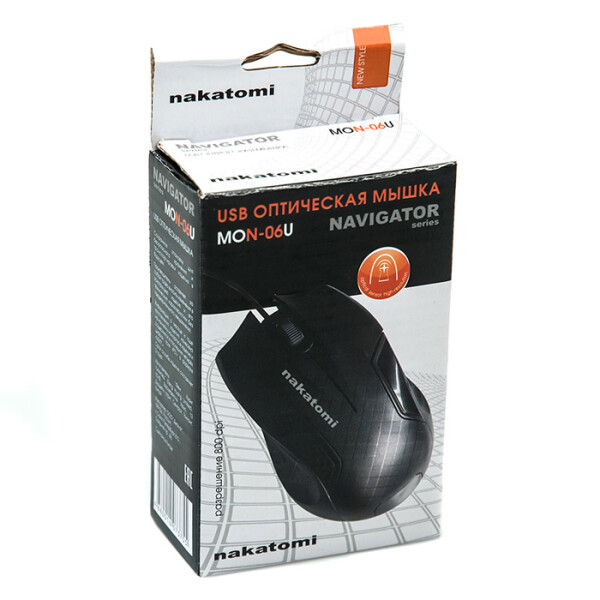 Nakatomi MON-06U - стильная проводная мышь по доступной цене. Модель имеет симметричную форму и ребристые углубления для пальцев для плотного захвата ладонью и комфортного управления любой рукой. Оптический сенсор с разрешением 800 dpi обеспечивает уверенную работу мыши практически на любых поверхностях. Мышь не требует установки драйверов и готова к использованию сразу после подключения к USB-порту компьютера.