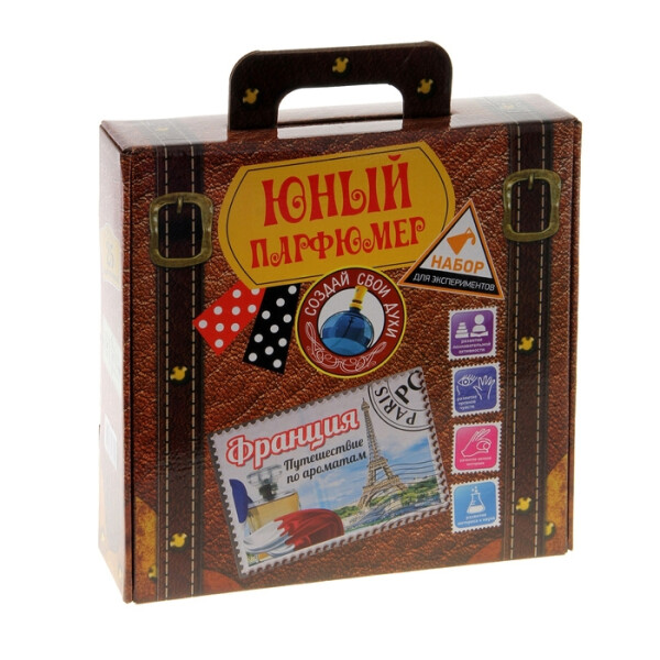 Занятный набор поразит вашего ребенка своей оригинальностью и раскроет все секреты создания парфюмерных ароматов. Благодаря набору, ваш ребенок станет обладателем уникальных знаний. К тому же, не каждый сможет похвастаться опытом в создании французских ароматов. Набор «Юный Парфюмер» «Путешествие по ароматам» «Франция» оформлен в виде чемоданчика для путешествий.