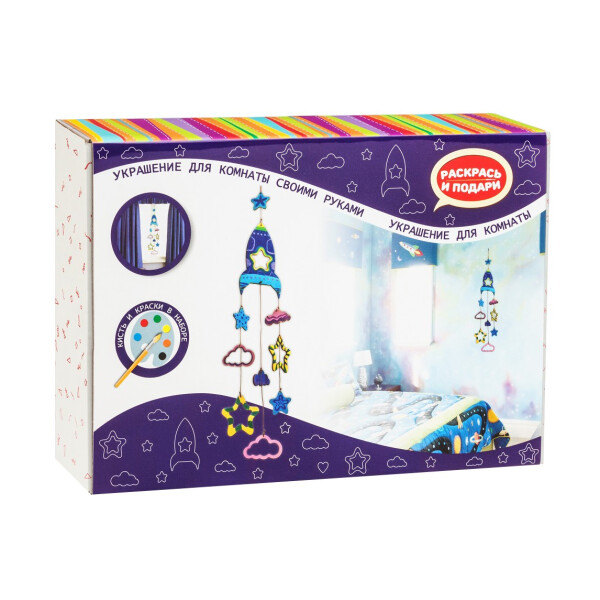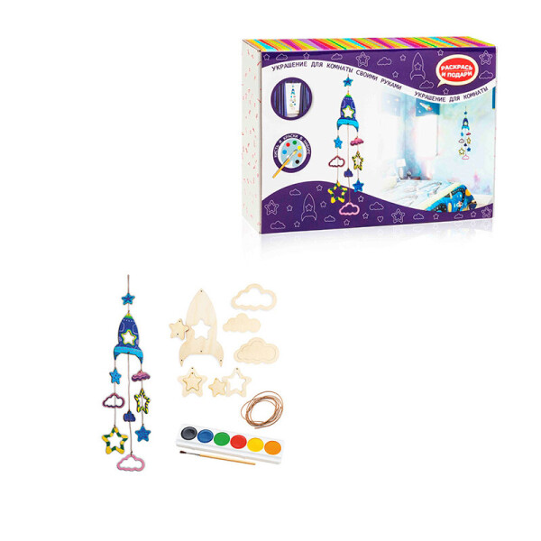 Серия "Создай украшение для комнаты" - это наборы для творчества, которые будут интересны детям и подросткам. В наборе - все необходимое, чтобы создать декор для комнаты или подвеску - подарок для близких. В наборе: деревянные заготовки для раскрашивания, краски и кисть, шнур для сборки подвески.