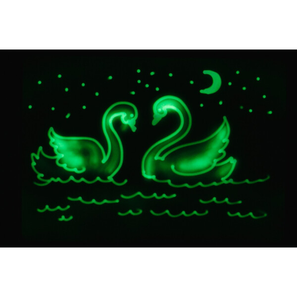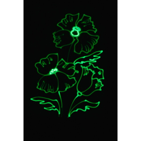 Максимальная яркость свечения рисунка держится 5-15 минут в зависимости от освещенности помещения. Чем темнее в помещении, тем ярче рисунок. Следующее изображение можно рисовать поверх предыдущего. Нарисованное изображение плавно затухает в течение 1,5 часов.