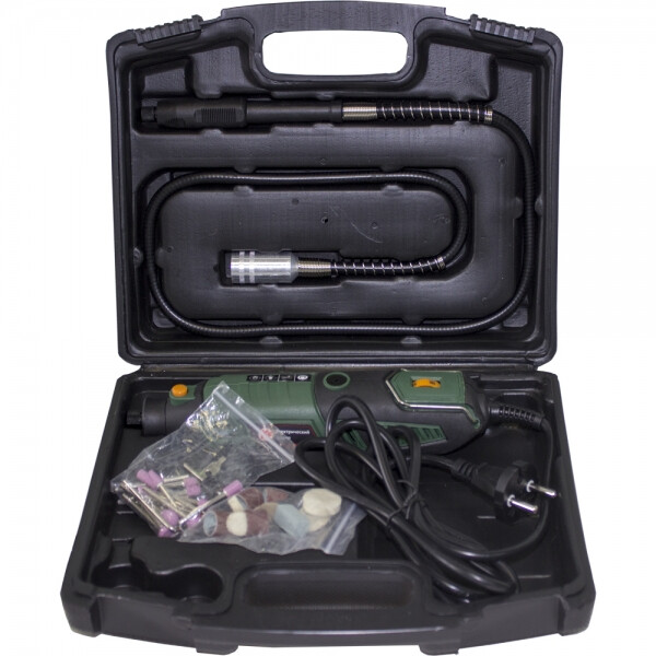Гравер Калибр 160Вт+ВГ 00000008283 - инструмент, предназначенный для бытовых работ по обточке, полировке и шлифовке предметов. Комплектуется набором, включающим сто принадлежностей: полировальные насадки; отрезные, шлифовальные диски; барабаны; щетки; алмазный бур; камни; фрезы; сверла. Возможна работа с различными материалами: металл, стекло, минералы, керамика, пластик. Поставляется с гибким валом.