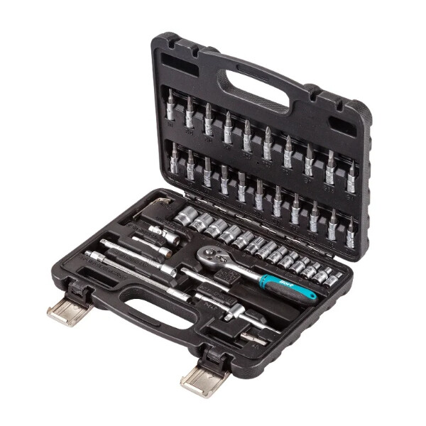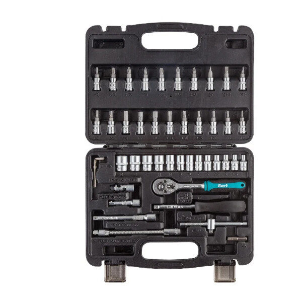 Набор поставляется в удобном кейсе. Он применяется при широком спектре работ. Набор инструмента Bort - отличное приобретение, которое всегда будет под рукой в нужный момент. В комплекте 46 предметов: отвертки, головки, удлинители, ключи, адаптер