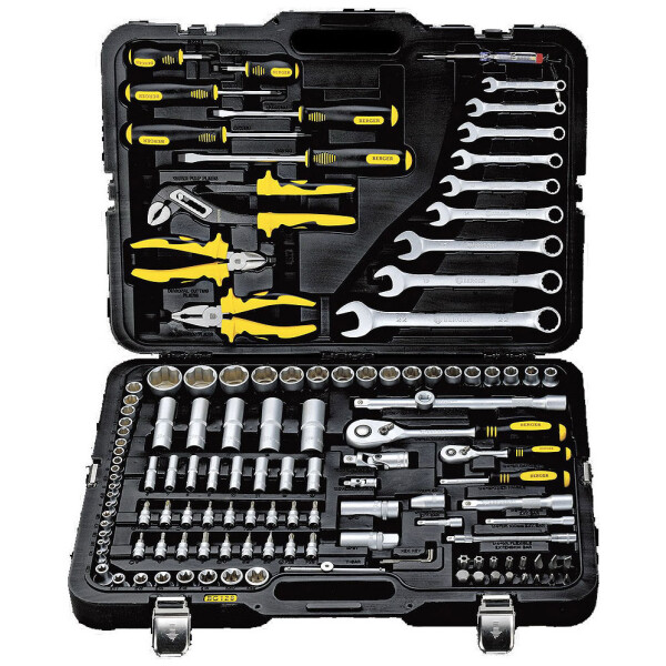 Набор инструментов Berger BG128-1214 удовлетворит все потребности любителя-умельца в качественном инструменте для дома/гаража и станет полезным приобретением для профессионала. Включающий 128 изделий комплект предлагает широкий выбор насадок-бит и торцевых головок, отверток и комбинированных ключей, губцевого инструмента. В нем представлены и средства для продуктивной работы с битами и головками: воротки, трещотки, карданные шарниры, удлинители и адаптеры.