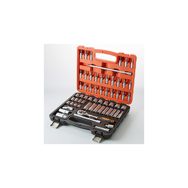 • рукоятка реверсивная (трещотка) 3/8” с функцией быстрого сброса 210 мм, храповый механизм с 24 зубьями, рабочий угол 15° - 1 штука