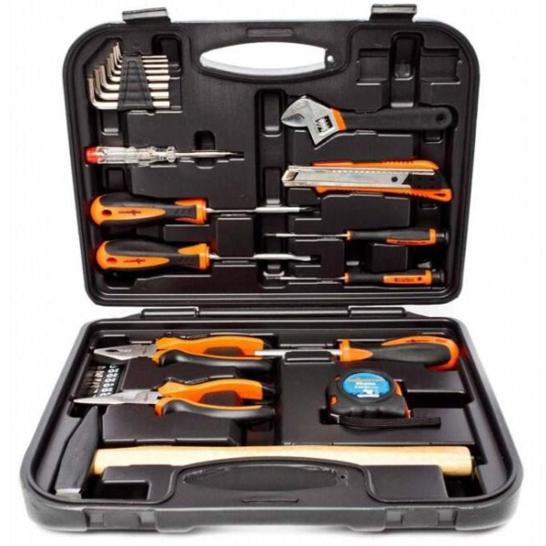 Набор домашнего мастера Квалитет "Сделай сам" включает в себя инструменты общего назначения — те, что могут понадобиться домашнему мастеру буквально в любой момент. Для удобства хранения и транспортировки набор упакован в пластиковые кейс.