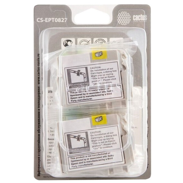 Струйный картридж Cactus CS-EPT0827 является полным аналогом оригинального картриджа Epson C13T11174A10. Предназначен для использования в принтерах Epson Stylus Photo 1410, R270, R290, R295, R390, RX590, RX610, RX690, T50, T59, TX659, TX800FW.