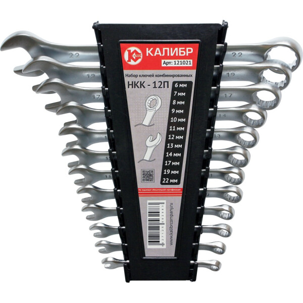 Набор ключей комбинированных Калибр НКК-12П (12 шт, CrV, 6, 7, 8, 9, 10, 11, 12, 13, 14, 17, 19, 22) самые популярные подборки размерного ряда.