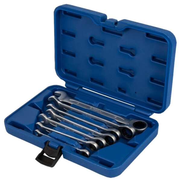 Универсальный гаечный ключ, состоящий из двух рабочих профилей - рожкового и накидного. Накидной профиль снабжен храповым механизмом в 72 зуба, обеспечивающим обратный ход ключа. Эта особенность важна при работе в ограниченном пространстве, а также повышает скорость работы с крепежом. Инструмент производится из высококачественных материалов, на предприятиях сертифицированных по стандартам ISO 9001. Точность изготовления и контроль качества на всех этапах производства, являются залогом длительной эксплуатации.