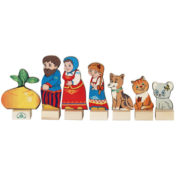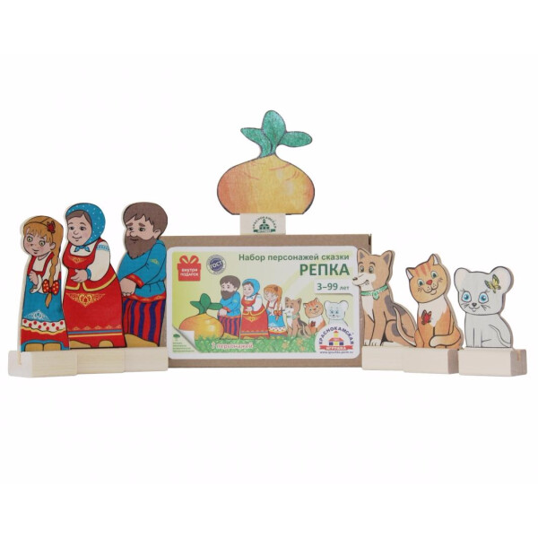 Персонажи сказки «Репка» станут отличным приобретением в импровизированный кукольный театр и помогут разыграть настоящие представления. В набор входят семь сказочных персонажей (героев сказки) и иллюстрированная книжка с текстом «Репки». С помощью этой игрушки дети познакомятся с этой известной сказкой и станут ее участниками, выбирая для игры одного или нескольких персонажей.