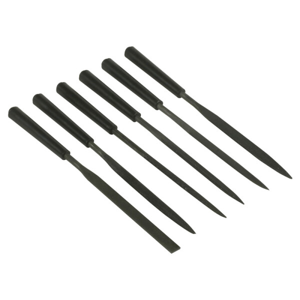 Набор надфилей 6 шт, 150 мм Stanley 0-22-500 применяется для обработки разнообразных заготовок при выполнении столярно-слесарных работ. В комплекте 6 инструментов различных профилей, которые позволяют выполнять большой спектр работ. Каждый надфиль для более удобной работы оснащен пластиковой ручкой.
