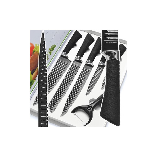 Набор ножей MAYER&BOCH с лезвиями из высококачественной нержавеющей стали станет незаменимым помощником на вашей кухне. Лезвия покрыты специальным антибактериальным Non-Stick покрытием, предотвращающим прилипание продуктов к лезвию ножа и обеспечивающим свежесть и гигиеничность продуктов при их нарезке. Поверхность клинков легко моется, не впитывает и не «передает» запахи пищи при параллельной нарезке различных продуктов. Набор ножей идеально подойдет для резки как мяса и рыбы, так и фруктов и овощей. При помощи керамического ножа-пиллера вы быстро и тонко сможете очистить овощи. Эргономичная рукоятка каждого изделия удобно ложится в ладонь, обеспечивая безопасную работу, комфортное положение в руке, надежный захват и не дает ножам скользить при использовании. Яркий дизайн изделий украсит вашу кухню, а благодаря красивой упаковке, такой набор станет еще и прекрасным подарком! В набор входит 5 ножей и керамический нож-пиллер.