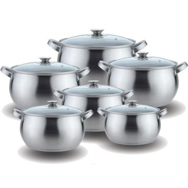 Набор посуды Kelli KL-4204 станет идеальным приобретением для домовитой хозяйки. В него входят 12 изделий – 6 кастрюль различной емкости и 6 крышек к ним. Преимущество комплекта в том, что изделия изготовлены из нержавеющей стали, как внутри, так и снаружи. Это гарантирует их длительный эксплуатационный срок.