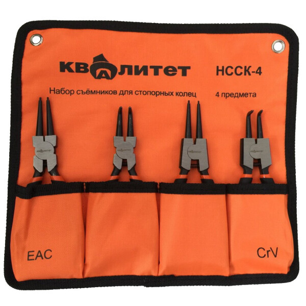 Набор съемников стопорных колец КВАЛИТЕТ НССК-4. Предназначен для внутренних и внешних стопорных колец.