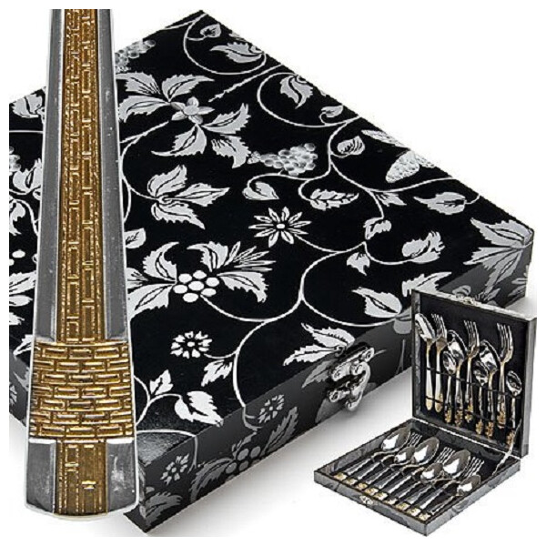 Набор столовых приборов MAYER&BOCH на 6 персон включает в себя 18 предметов: 6 столовых ложек, 6 столовых вилок, 6 чайных ложек. Столовые приборы изготавливаются из высококачественной нержавеющей стали, все изделия проходят тщательный технологический контроль. Приборы из нержавеющей стали такого состава отличаются высокими антикоррозионными свойствами, значительной устойчивостью к воздействию кислот и щелочей. Такая сталь не изменяет вкус и цвет пищи, не выделяет вредных веществ. Элегантные золотые узоры на столовых приборах выполнены по технологии плазменного напыления, обеспечивающего высокую износостойкость покрытия. Стильный, классический дизайн и отличное качество столовых приборов MAYER&BOCH делают набор желанной покупкой для любого, даже самого пристрастного, клиента. Набор столовых приборов MAYER&BOCH, безусловно, займет достойное место на любой кухне. Набор подходит как для ежедневного использования, так и для торжественных случаев. Набор упакован в красивый подарочный деревянный кейс. Подходит для мытья в посудомоечной машине.