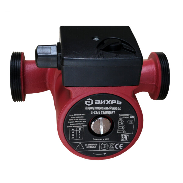 Циркуляционный насос ВИХРЬ Ц-32/6 предназначен для обеспечения циркуляции воды в системах отопления, круговых трубопроводах горячего и холодного водоснабжения, центральных отопительных установках и системах перекачки промышленных вод (системах кондиционирования, охлаждения). Насос представляет собой компактное устройство с всасывающей и нагнетающей функциями. Вода перекачивается при помощи вращения рабочего колеса электродвигателем насоса. Данный вид насосов надёжен, экономичен и прост в использовании.