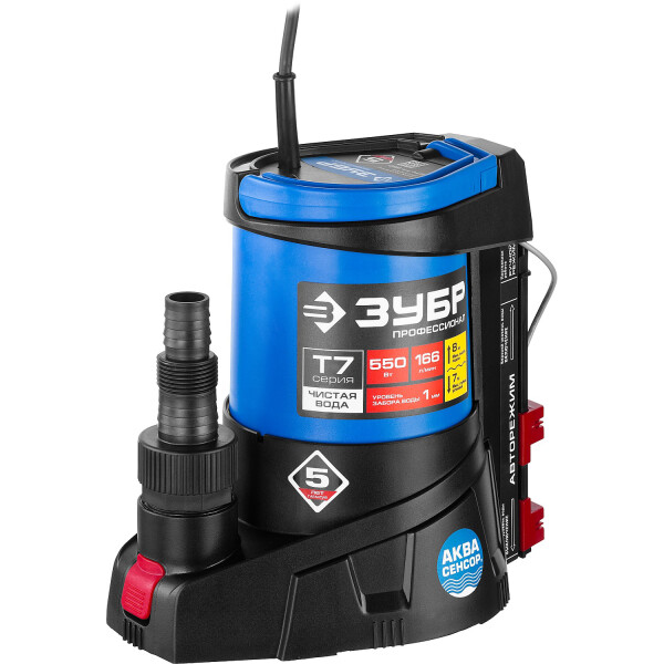 Погружной дренажный насос для чистой воды Зубр Профессионал Т7 АкваСенсор НПЧ-Т7-550 отличается надежностью, тихой работой и простотой в эксплуатации. Погружается в колодец, водоем, бассейн для откачивания чистой воды. Оснащен датчиками уровня воды и термопредохранителем, который гарантирует защиту от перегрева.