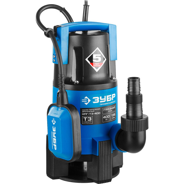 Погружной дренажный насос для грязной воды ЗУБР ПРОФЕССИОНАЛ Т3 НПГ-Т3-400 применяется на садовых участках. Подключается к электрической сети 220 В. Используется для осушения водоёмов, подачи воды из колодцев, организации аэрации. Корпус изготовлен из армированного стекловолокном пластика, что обеспечивает устойчивость к ударам. Поплавковый выключатель предотвращает поломку из-за сухого хода.