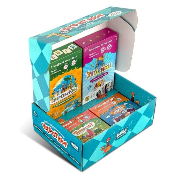 Набор из обучающих настольных игр "Игротека" от бренда "Банда умников" - это идеальная подборка развивающих и обучающих игр для ребенка.В наборе находятся 4 игры: "Зверобуквы", "Турбосчет", "Этажики" и "Трафик Джем".