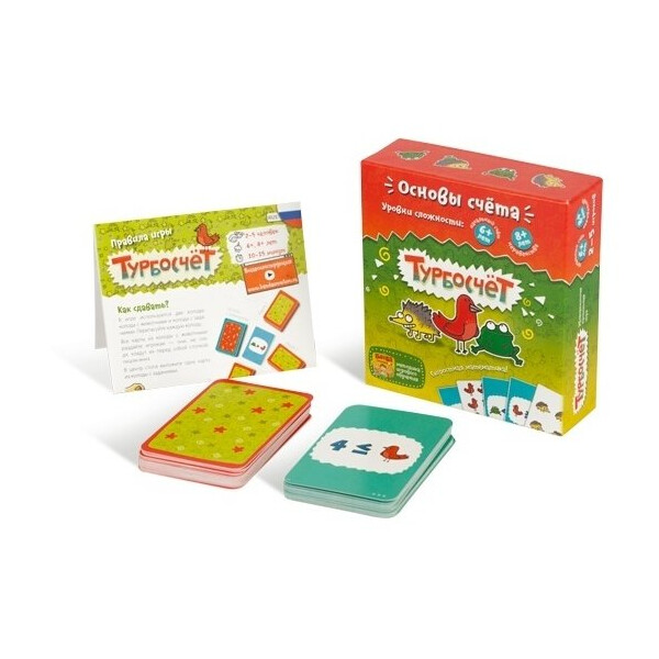 Учиться быстро считать, складывать и сравнивать числа будет намного легче с игрой "Турбосчет". Ребенку в этом помогут карточки со смешными красочными животными.