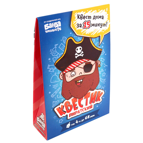 Пиратский корабль долго странствовал по волнам, сражаясь с тысячами горбатых моллюсков. Сундук Дейви Джонса так и остался за бортом, зато на крючок попалась необычная карточка с рисунком. Разрази меня гром, если она не ведет к сокровищам! Вручите подарок эффектно при помощи забавного квеста по квартире! В этой коробочке — набор различных интригующих подсказок, которые приведут к подарку.