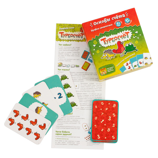 Турбосчет — веселая и очень динамичная игра, которая мгновенно увлекает и детей, и взрослых. За счет нескольких уровней сложности игра будет очень полезна и для дошкольников, которые только-только запомнили названия чисел, и для учеников младших классов, осваивающих арифметические действия.