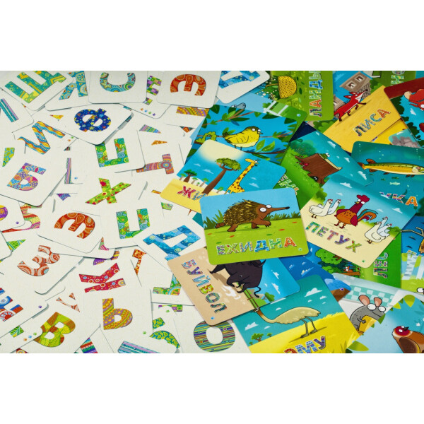 Обучающая игра Банда Умников "Зверобуквы" поможет всем детям только начинающим изучать буквы и простые слова. С помощью увлекательной механики дети смогут выучить все 33 буквы алфавита и научатся составлять из них слова. В комплекте: 33 карты со зверями и словами, 70 карт с буквами, 2 карты-памятки, правила игры.