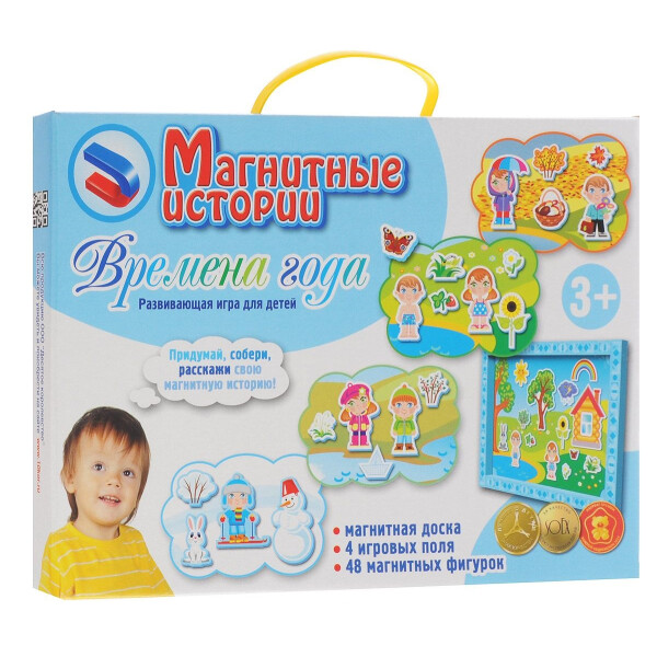 Развивающая игра Десятое королевство "Времена года" позволяет в игровой форме познакомиться с временами года, научиться понимать, чем зима, весна, лето и осень отличаются друг от друга.Выберите игровое поле, закрепите его на доске с помощью магнитных уголков и помогите ребенку подобрать соответствующие выбранному полю фигурки. Магнитная основа поля позволяет фигуркам хорошо держаться на нем.