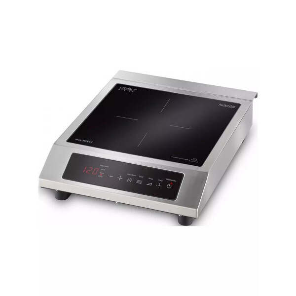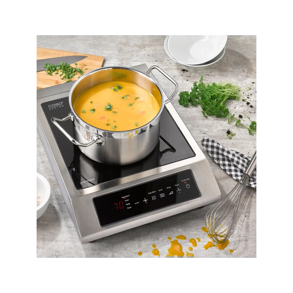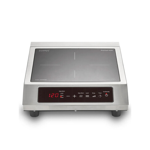 Настольная плита Caso Pro Chef 3500 выполнена из высококачественной стеклокерамической поверхности с прочным и очень плоским корпусом из нержавеющей стали. Она имеет функцию точного приготовления пищи с с помощью Smart Control на 12 различных уровнях мощности и интуитивно понятное сенсорное управление. Таймер работает до 24 часов. Точная настройка температуры от 60 до 240 C (с шагом 10 C) и автоматическое определение посуды ( диаметр 14 - 26 см ).