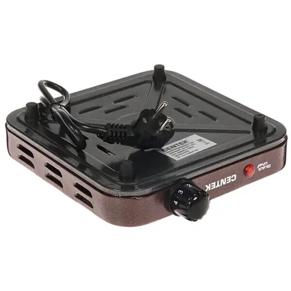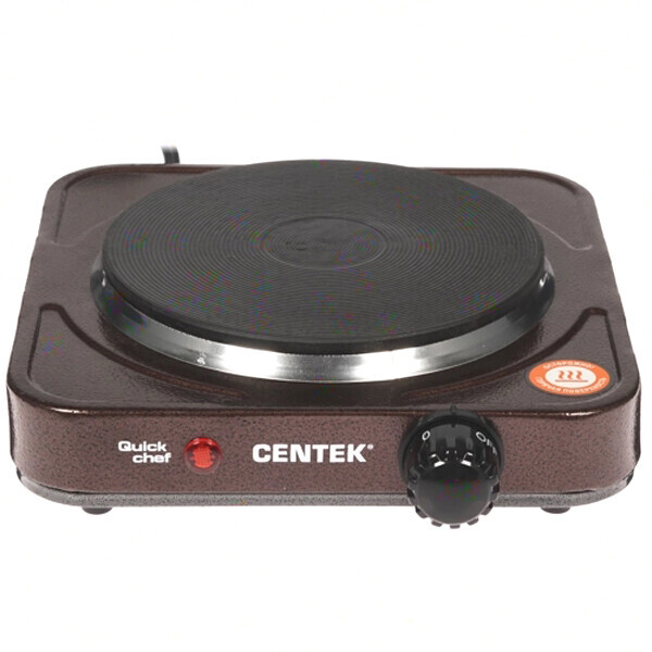Плита компактная электрическая Centek представлена в классическом дизайне коричневого корпуса, благодаря чему легко впишется на небольшой кухонный столик. Прибор оснащен чугунной конфоркой с диаметром 15.5 см и простой в уходе эмалированной поверхностью. Покрытие плиты легко очищается от налипшего жира и прочих пищевых загрязнений.