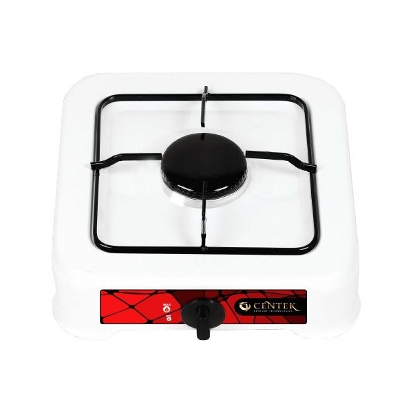 Газовая плитка Centek CT-1520 имеет белую панель конфорок из эмалированной стали, на которой расположена единственная алюминиевая газовая горелка. Данный газовый прибор, отличающийся компактными габаритами, может получать газ для работы как из портативных газовых баллонов, так и из магистральной сети газоснабжения. Плита комплектуется дополнительной форсункой для работы на природном газе. Она оптимально подходит для кухни малого метража и предусматривает установку на столе.