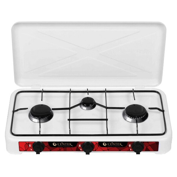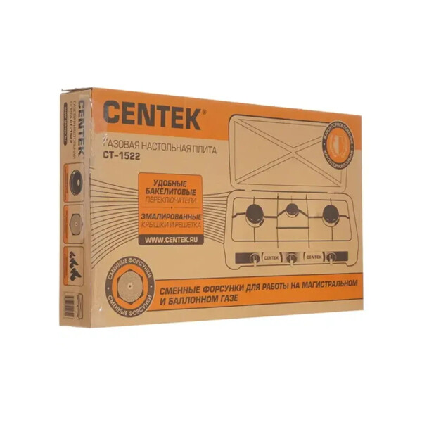 Компактная газовая плита Centek удобна и проста в использовании. Корпус и решётка выполнены из эмалированного металла. Алюминиевые горелки также имеют защитное покрытие. С помощью эргономичных переключателей легко регулировать высоту пламени на каждой конфорке. В комплект входит сменная форсунка для работы на природном (магистральном) газе.