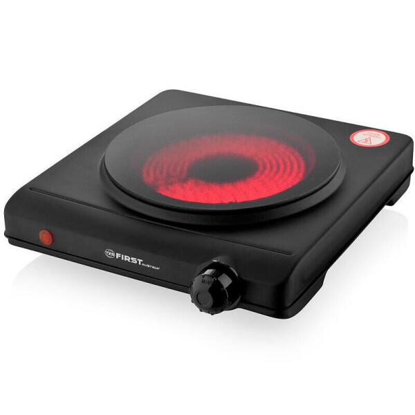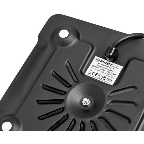 Нагрев инфракрасной электроплиты First FA 5096-1 происходит за счет трубчатых электронагревателей (ТЭН-ов). Инфракрасные электроплиты - менее инерционные, чем дисковые, чугунные. Корпус инфракрасной электроплиты First FA 5096-1 выполнен в черном цвете. С нижней части корпуса инфракрасной электроплиты First FA 5096-1 расположены прорезиненные ножки, придающие плите устойчивое положение при работе. На передней части корпуса размещены световой индикатор питания и механический, поворотный регулятор термостата. Варочная поверхность инфракрасной электроплиты First FA 5096-1 сделана из закаленного, высокопрочного стекла. Мощность модели - 1250Вт. С ее помощью, Вы можете достигнуть температуры 300С всего за 30 секунд!