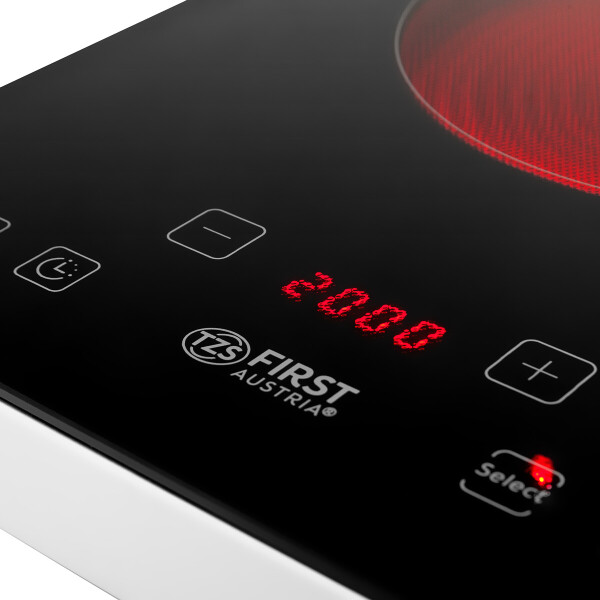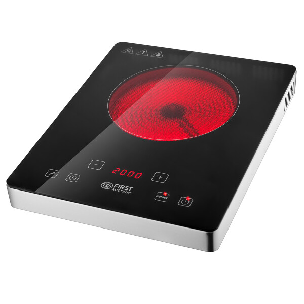 Электрическая плитка First FA-5096-8 выполнена из высококачественной стеклокерамики, легко очищаемой от загрязнений. Устройство мощностью 2000 Вт позволяет настраивать требуемую температуру - всего доступно восемь уровней.