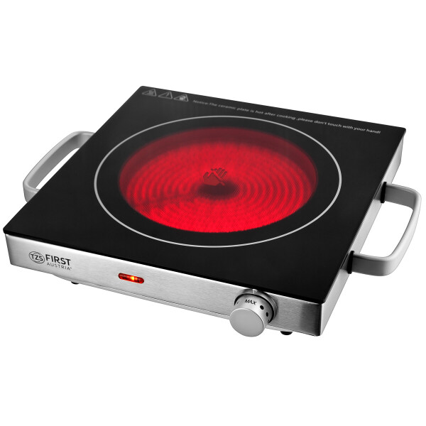 Настольная плитка First выполнена в лаконичном дизайне. Подойдет для установки на небольших кухнях, в качестве основной поверхности для приготовления пищи на даче. Рабочее полотно плитки изготовлено из жаропрочного стекла, отличающегося высокой устойчивостью к высоким температурам и механическим повреждениям.