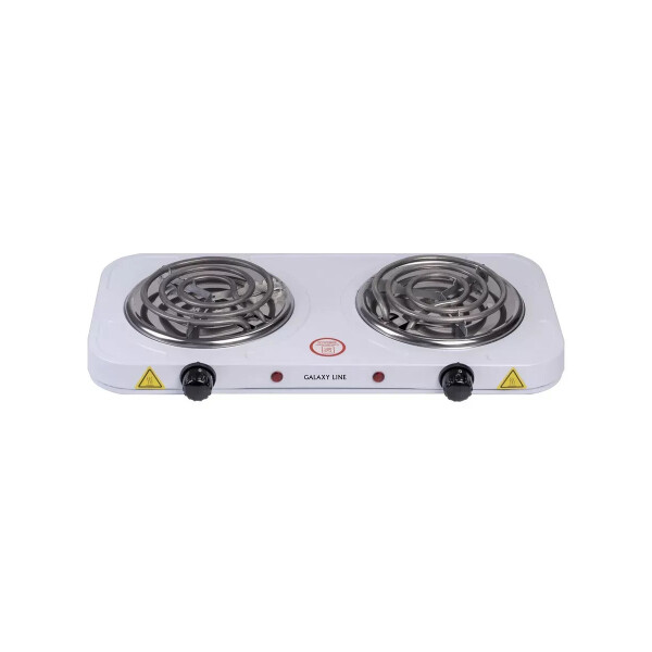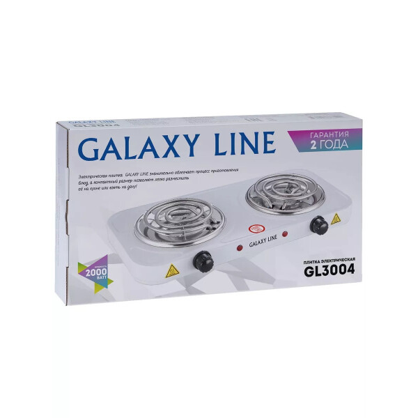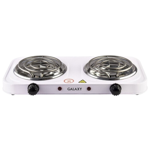 Электрическая плитка Galaxy GL3004 оснащена поворотными переключателями и двумя индикаторами работы. Плитка имеет две конфорки, позволяющие готовить сразу несколько блюд.